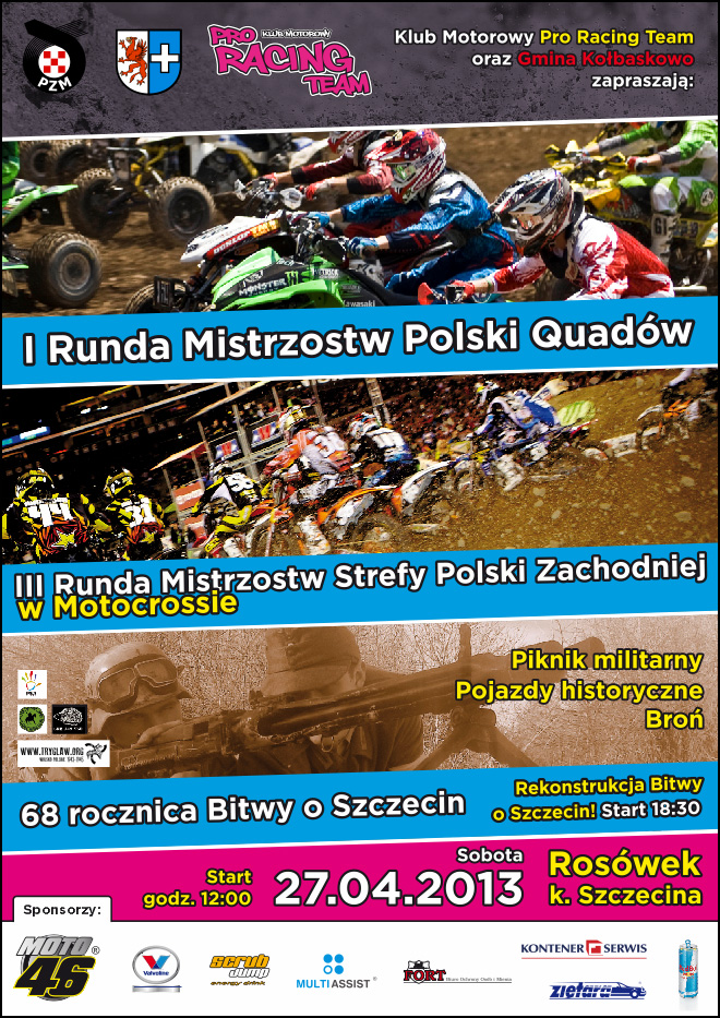Już dziś obowiązkowo wpisz w swój kalendarz datę 27 kwietnia 2013 roku. Piękne kobiety, wyścigi motorów, pokazy militariów i rekonstrukcja Bitwy o Szczecin, to niektóre z atrakcji, które przygotowała Gmina Kołbaskowo. . A to wszystko w jednym miejscu, na Torze Motocrossowym im. Zbigniewa Rutkowskiego w Rosówku.