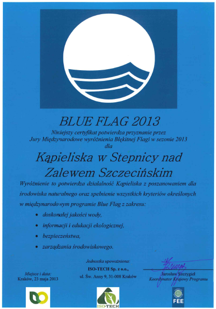 Międzynarodowe Jury w Kopenhadze przyznało dla 3850 plaż na świecie Błękitne Flagi na sezon 2013 m.in. dla kąpieliska w Stepnicy nad Zalewem Szczecińskim, które po raz kolejny otrzymało to prestiżowe wyróżnienie.