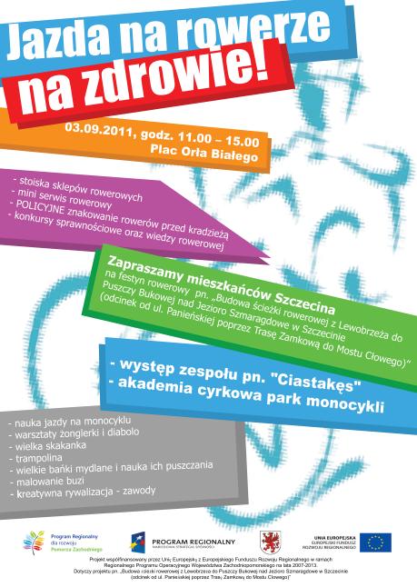 Festyn rowerowy promuje projekt pn. „Budowa ścieżki rowerowej z Lewobrzeża do Puszczy Bukowej nad Jezioro Szmaragdowe w Szczecinie (odcinek od ul. Panieńskiej poprzez Trasę Zamkową do Mostu Cłowego)”. Projekt współfinansowany przez Unię Europejską z Europejskiego Funduszu Rozwoju Regionalnego w ramachRegionalnego Programu Operacyjnego Województwa Zachodniopomorskiego na lata 2007-2013.