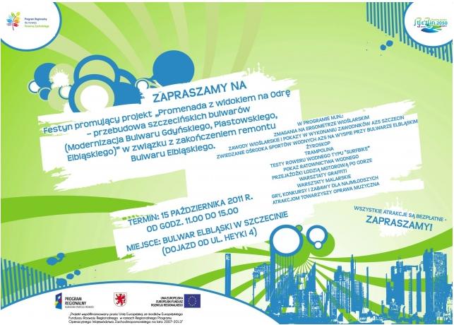 Projekt „Promenada z widokiem na Odrę - Przebudowa szczecińskich bulwarów” jest w 50 procentach dofinansowany przez Unię Europejską z Europejskiego Funduszu Rozwoju Regionalnego w ramach Regionalnego Programu Operacyjnego Województwa Zachodniopomorskiego na lata 2007-2013.