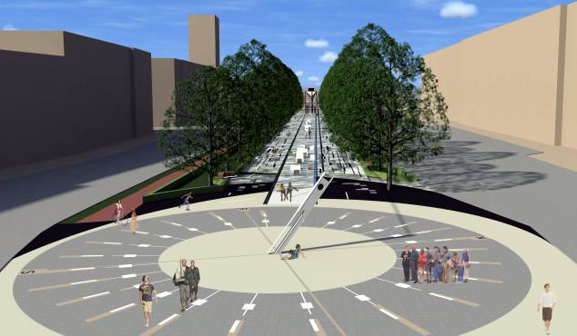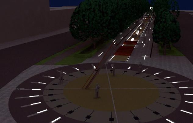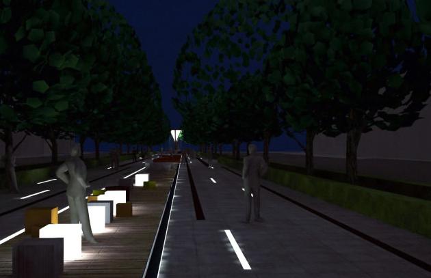 Wzdłuż alei będą biegły dwie cienkie linie wypełnione płynącą wodą, które wieczorem będą świecić. Cała aleja będzie również wypełniona zielenią. Wzdłuż (tak jak do tej pory) będą drzewa i żywopłoty.