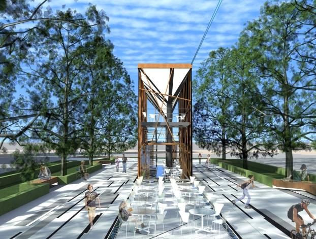 Na drugim końcu, od strony pl. Żołnierza, powstanie szklany pawilon. Obiekt będzie spełniał m.in.: funkcję gastronomiczną i wystawienniczą. Część pawilonu znajdzie się pod ziemią. Wiosną i Latem będzie możliwość wystawienia stolików na zewnątrz pawilonu. Wieczorem obiekt będzie podświetlany. Na alei rozmieszczone będą podświetlane kostki, które będą spełniały różne funkcje. Kostki mogą służyć jako ławki lub nośniki informacji np.: o historii Szczecina, o aktualnych wydarzeniach, itd.
