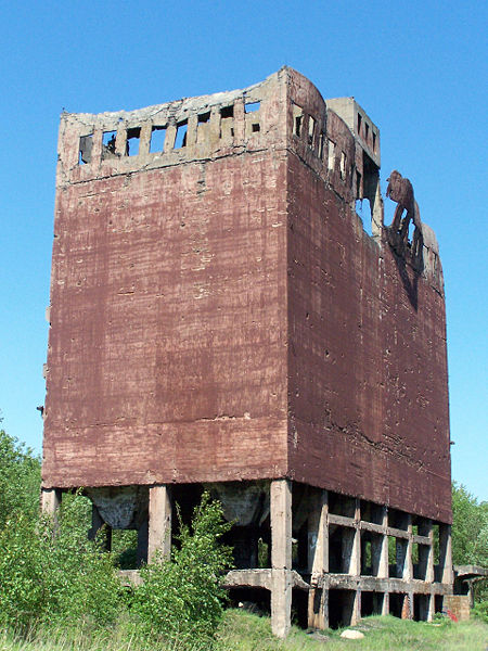 Szkielet hali fabrycznej Elewator węglowy Wieża wartownicza