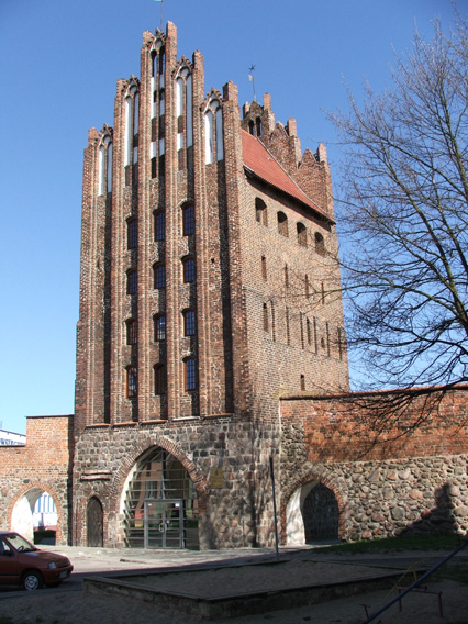 BRAMA WOLIŃSKA - (zwana również Bramą Chrobrego) zbudowana w XIV w. w stylu gotyckim. Była jedną z czterech bram wjazdowych do miasta (inne bramy to: Stargardzka, Szczecińska i Młyńska). Strzelista budowla obronna należy do najpiękniejszych na Pomorzu. Wznosi się na wysokość 26 metrów (6 kondygnacji). Zaczęto ją budować w drugiej połowie XIII wieku. Początkowo była to strażnica obronna z kamieni narzutowych. W XIV i XV wieku nadbudowano wieżę. Od strony zewnętrznej utworzono urządzenie do opuszczania brony (w części zachowane) oraz wprowadzono bogatą dekorację blendową, profilującą ścianę wieży.